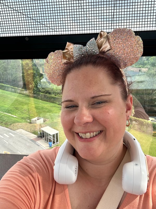 I’ve worn a neck fan through heat, humidity, and even surprise rainstorms. There’s a photo of me riding the Disney Skyliner with my neck fan still going. It’s not glamorous, but it’s real. And it works.